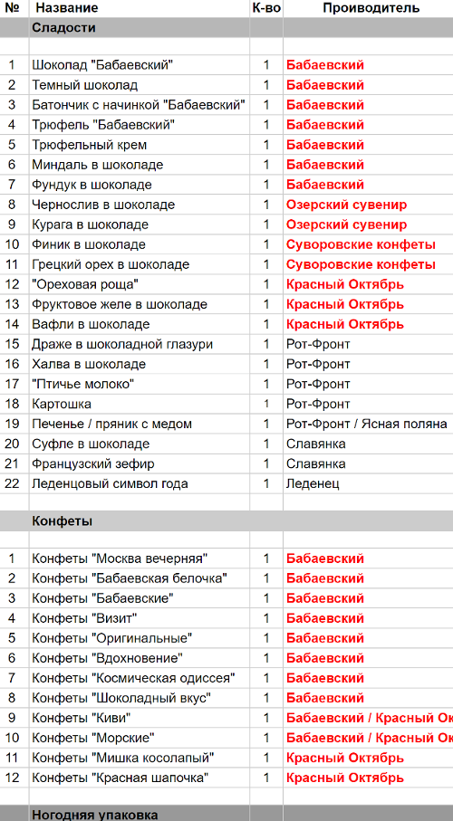 1. Проверить, можно ли внести изменения в состав подарка. Если нет, то скорее всего наборы были собраны еще летом из конфет, произведенных еще раньше