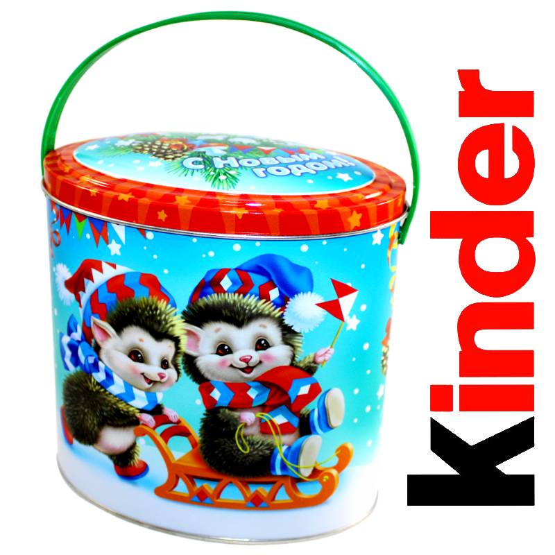 Сладкий новогодний подарок в жестяной упаковке весом 800 грамм